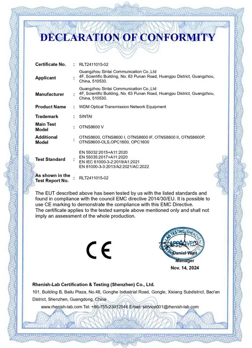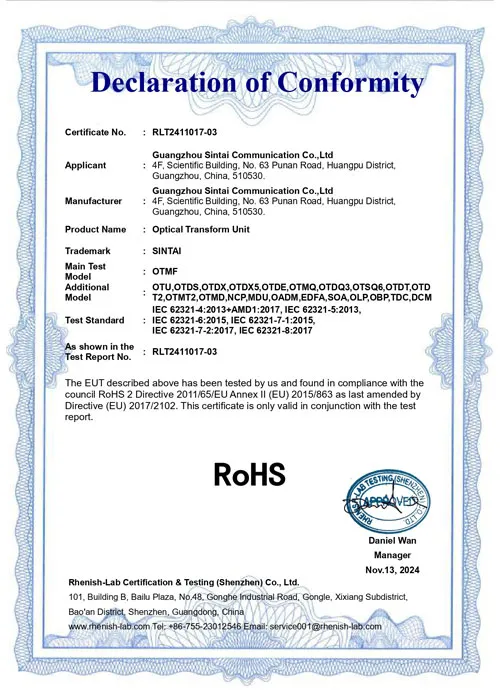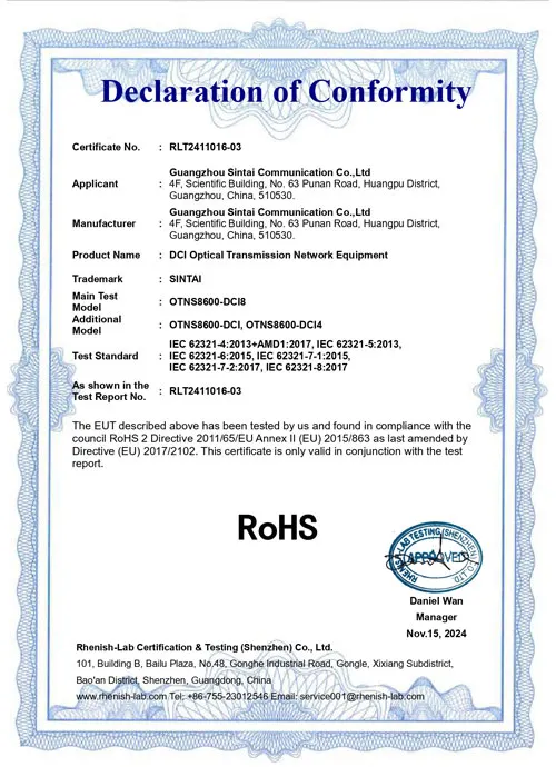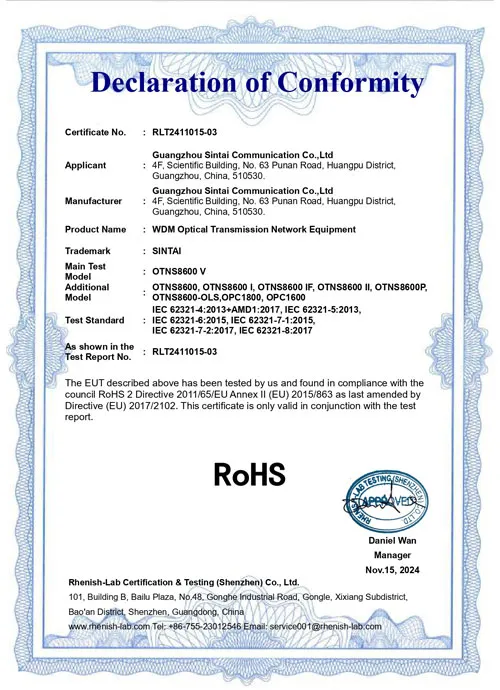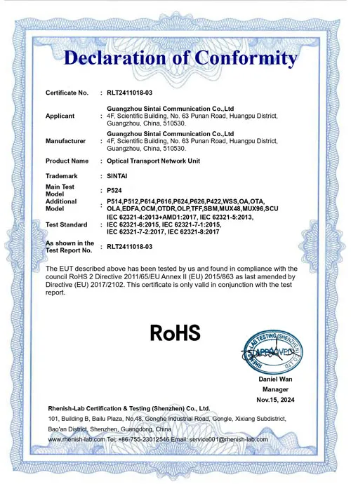 RLT2411015-03 DWDM Device CE-ROHS certiciticaon