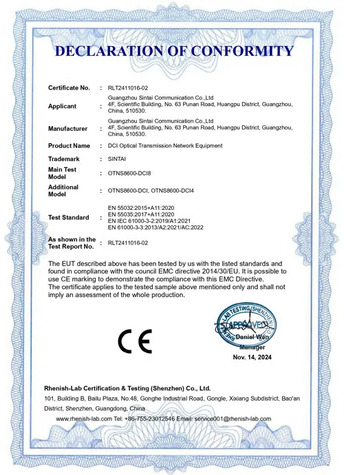 RLT2411016-02 DCI Device CE-EMC certifaction